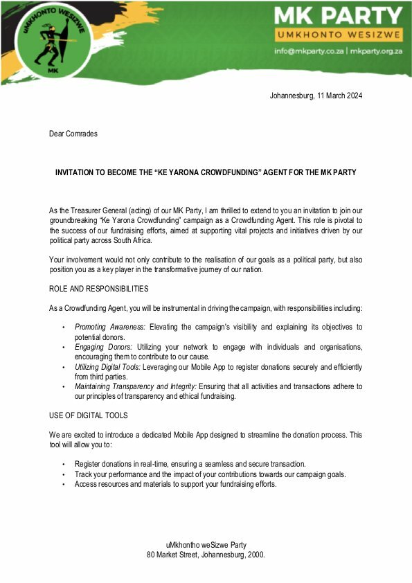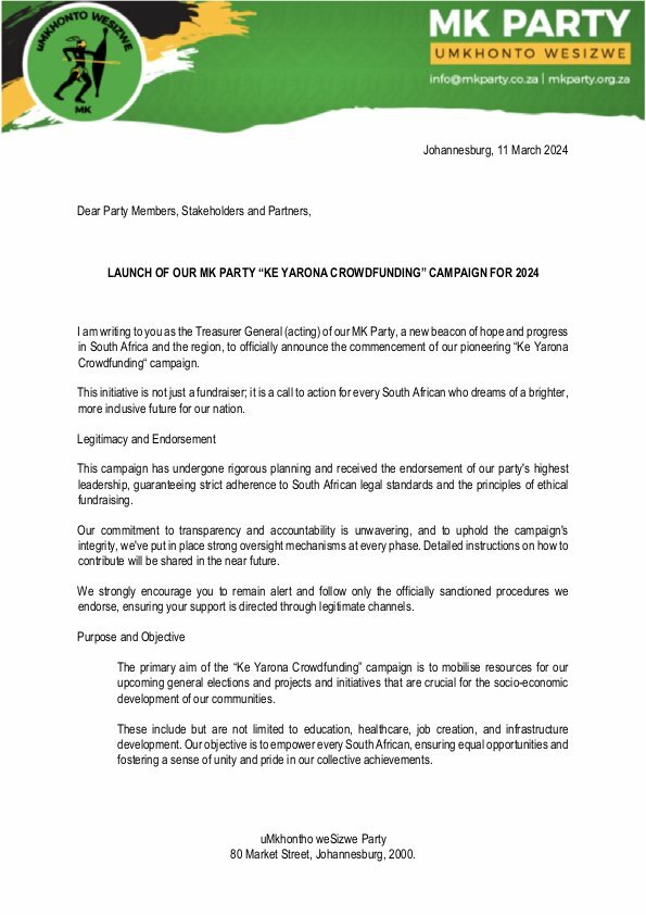 The MK Party is inviting keen community volunteers to be part of the Eyethusonke - Ke Yarona fund raising campaign.